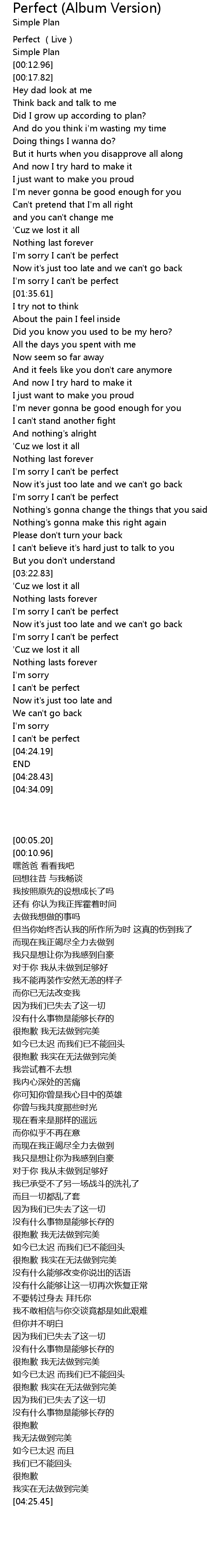 | [03:53.47] | I' m sorry I can' t be perfect |