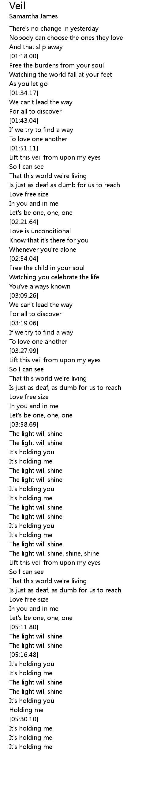 Lift this veil from upon my eyes |