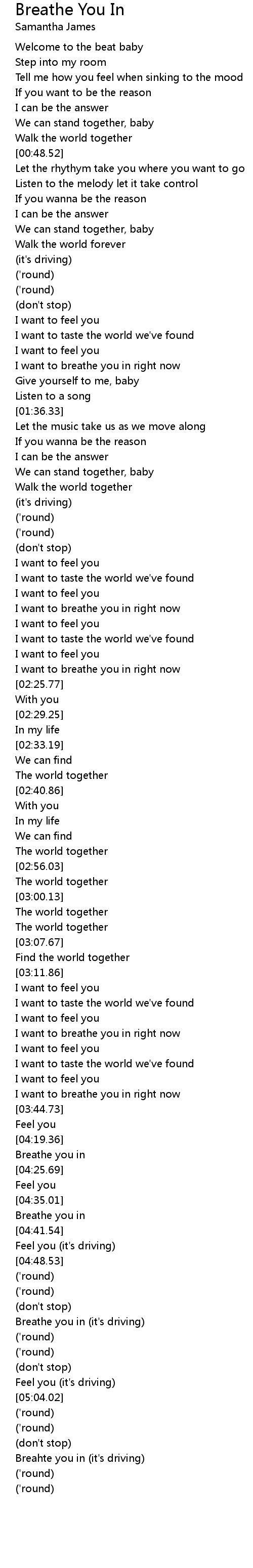 Breathe you in (it's driving) |