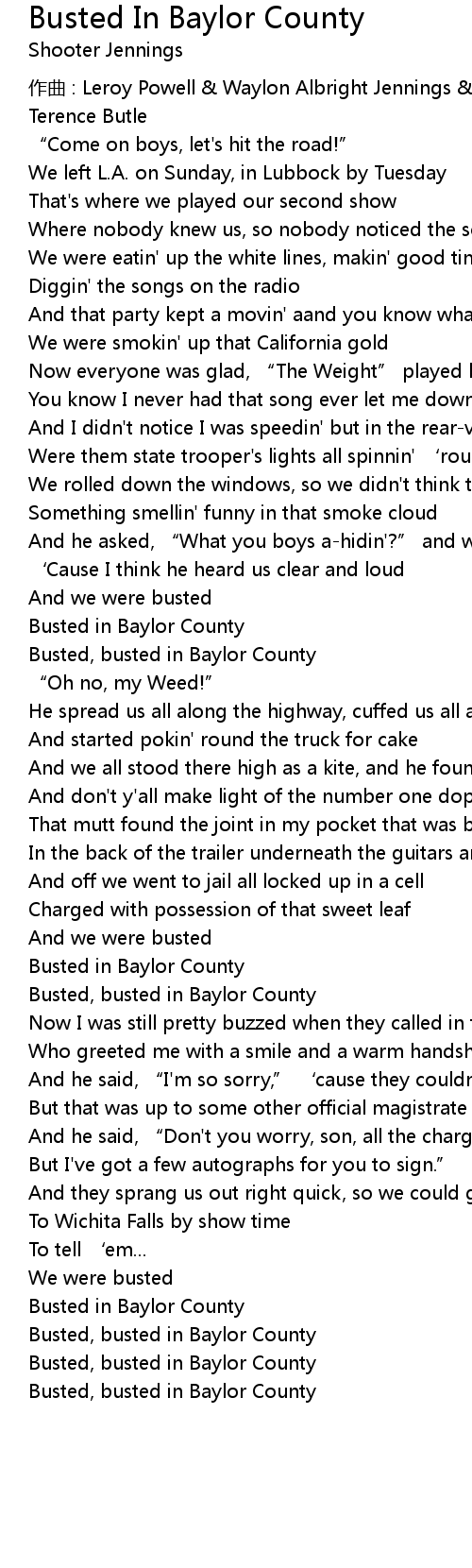| 歌曲 | Busted In Baylor County |