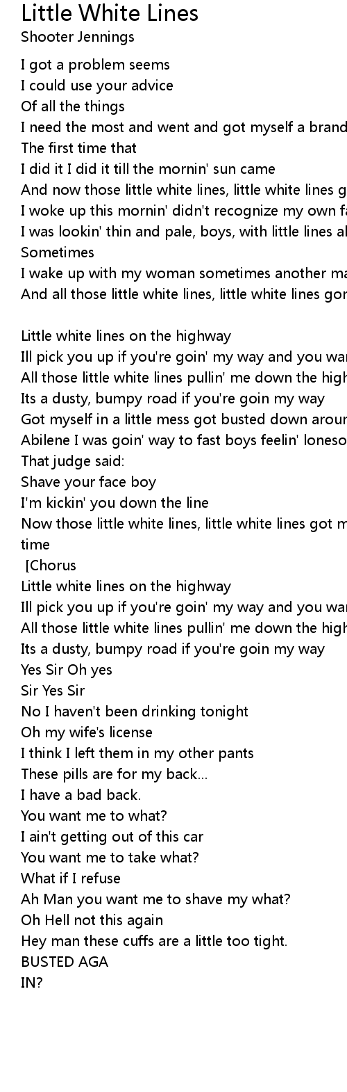 And now those little white lines, little white lines gonna sizzle up my brain |
