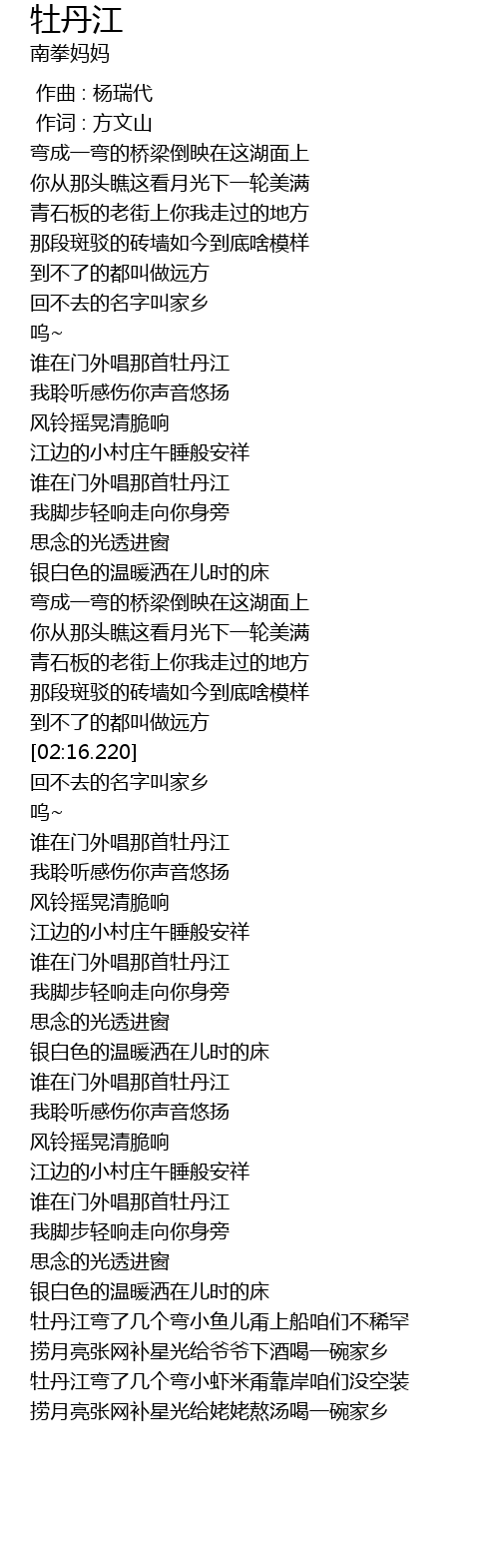 | [02:52.120] | 谁在门外唱那首牡丹江 |