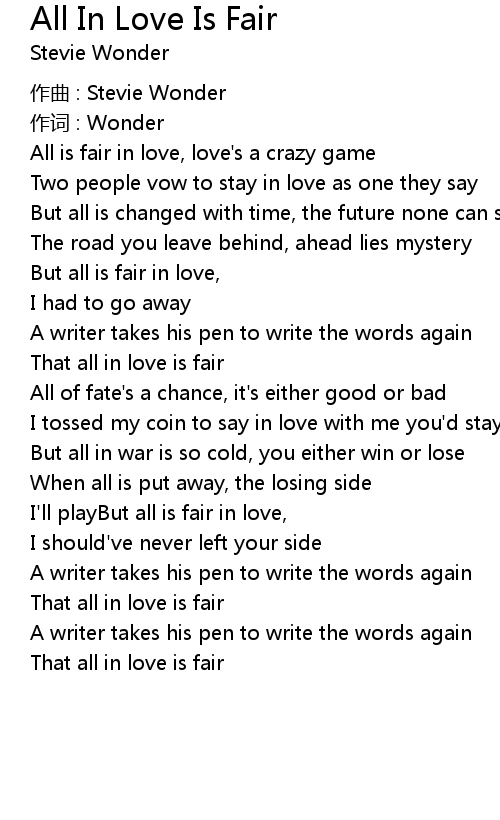 | 歌曲 | All In Love Is Fair |