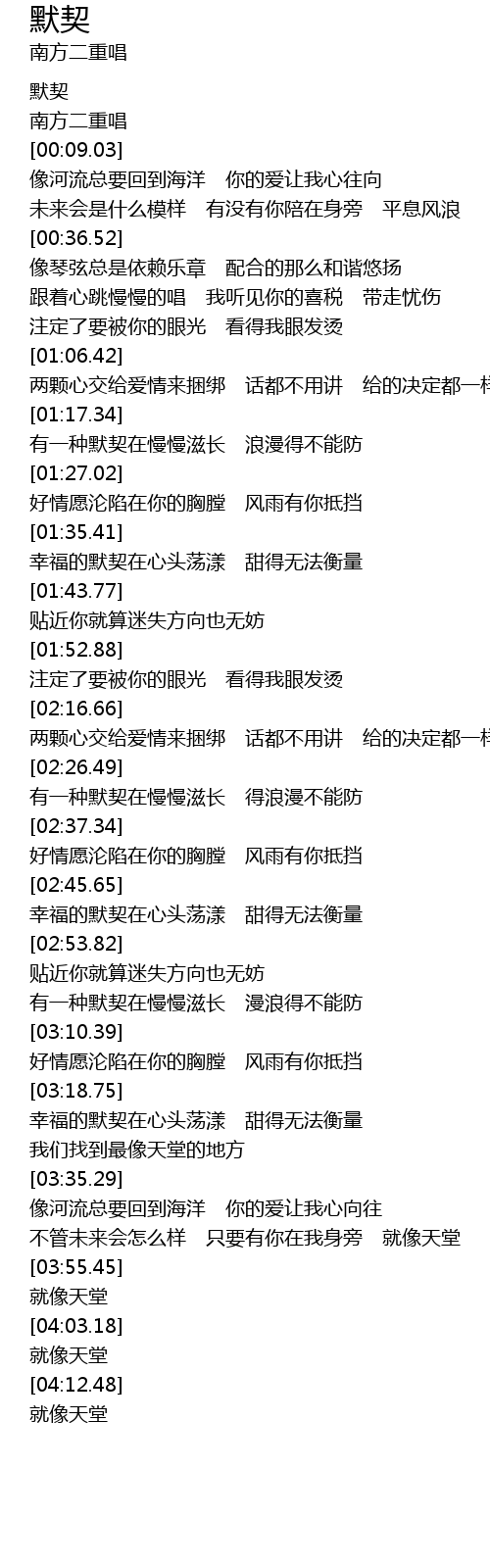 | [02:30.11] | 有一种默契在慢慢滋长 得浪漫不能防 |