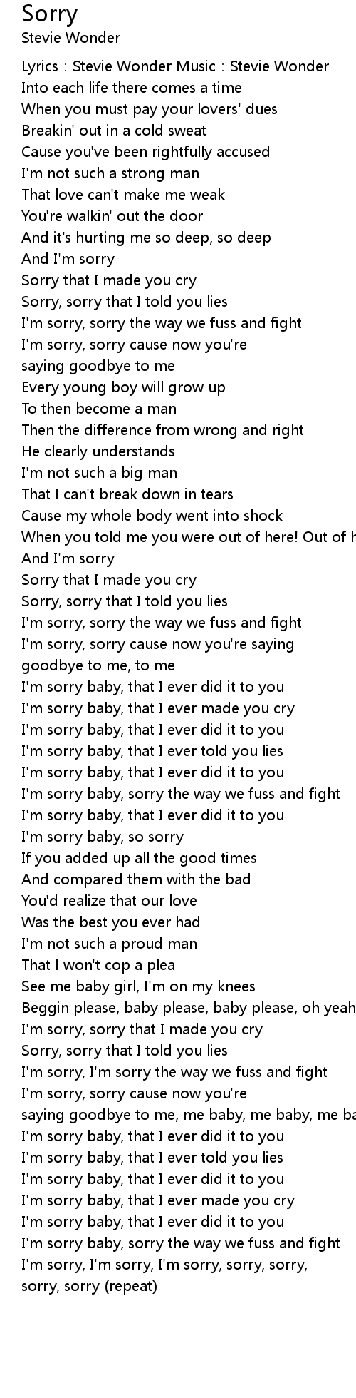 | I' m sorry, I' m sorry, I' m sorry, sorry, sorry, | |