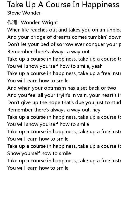 | Take up a course in happiness, take up a course to clear out your mind | |