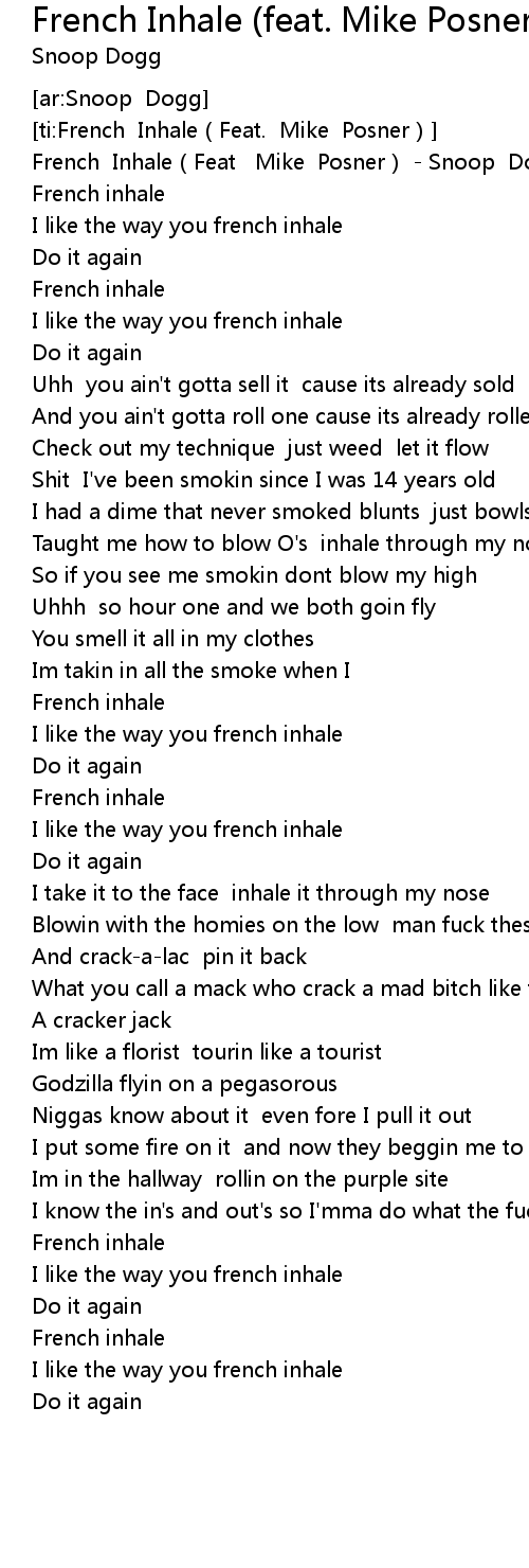 | [00:00.82] | French Inhale Feat Mike Posner Snoop Dogg |