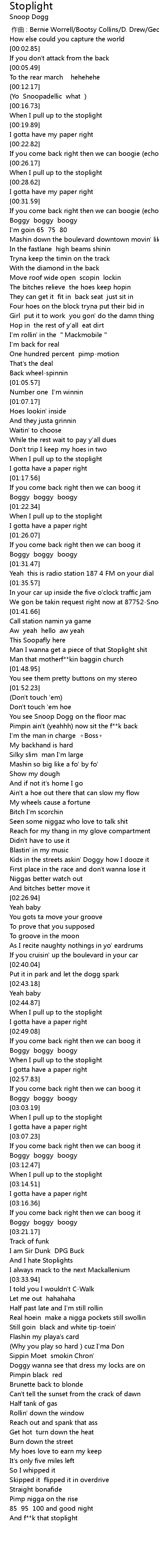 | [01:46.01] | Man I wanna get a piece of that Stoplight shit |