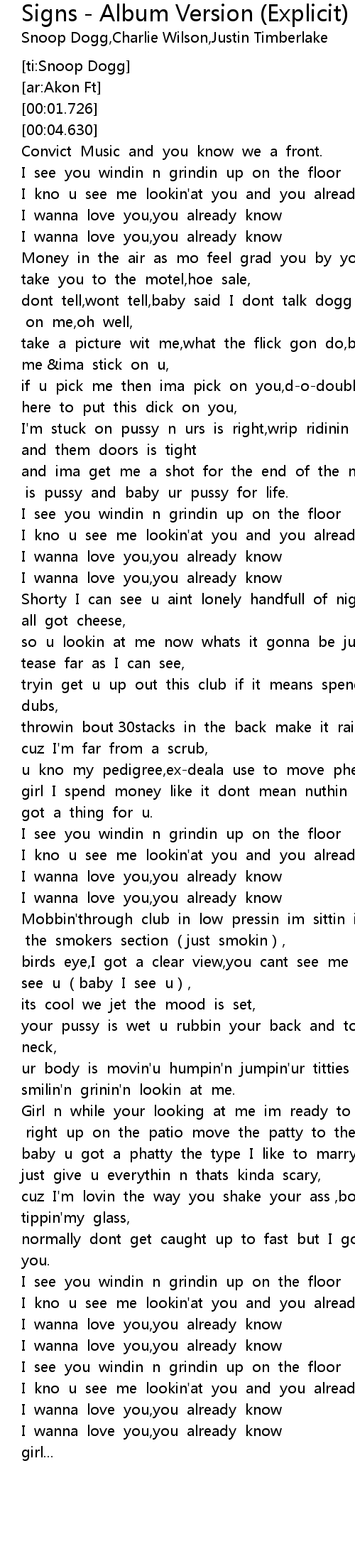 | [03:06.220] | I see you windin n grindin up on the floor |