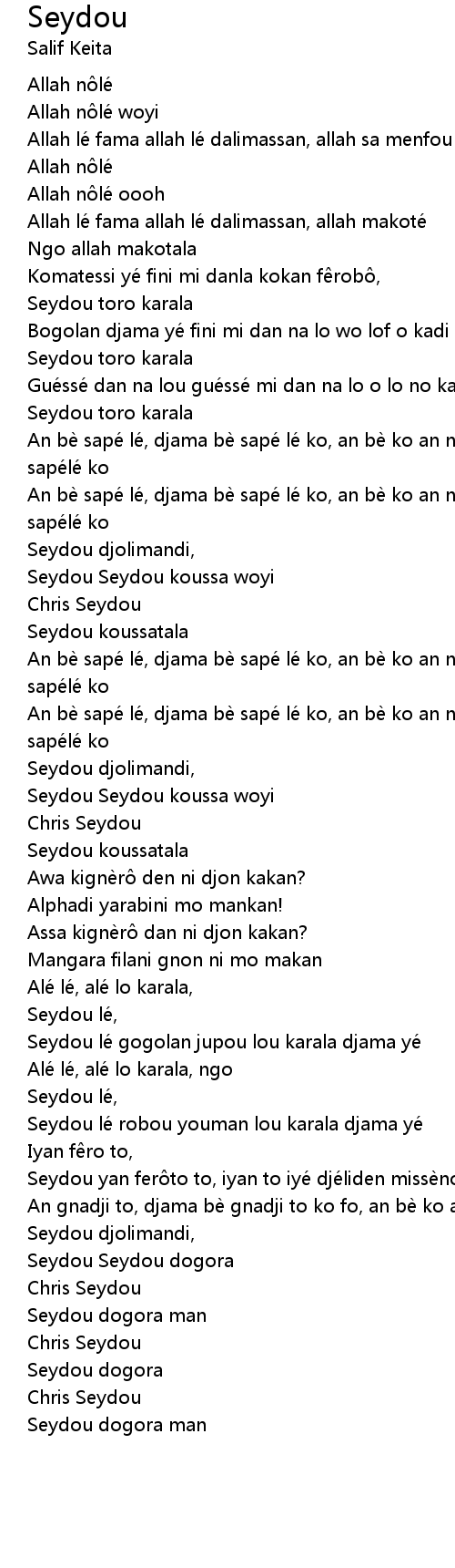 | Allah lé fama allah lé dalimassan, allah makoté | |