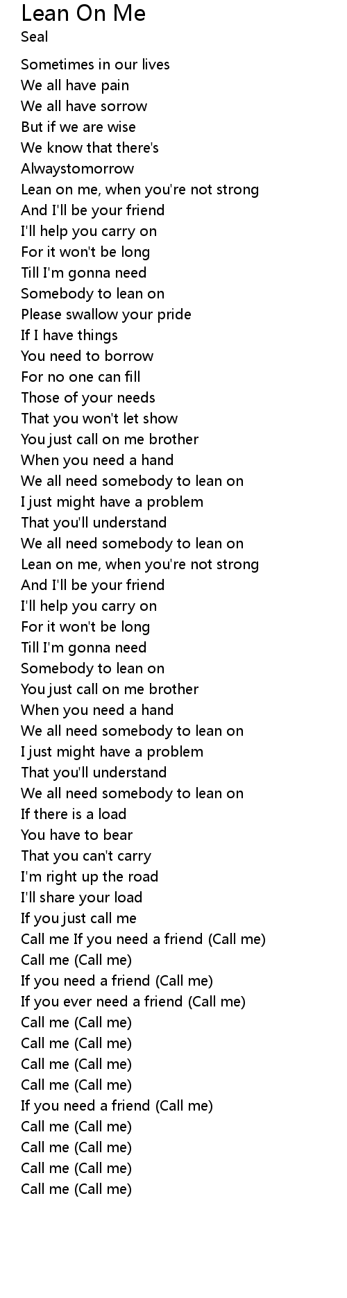 | We all need somebody to lean on | |