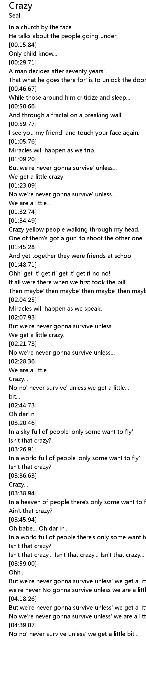 But we're never gonna survive unless' we get a little crazy.. crazy.. |