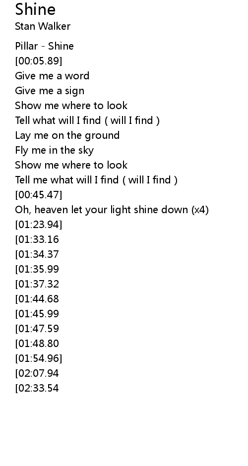 Oh, heaven let your light shine down (x4) |