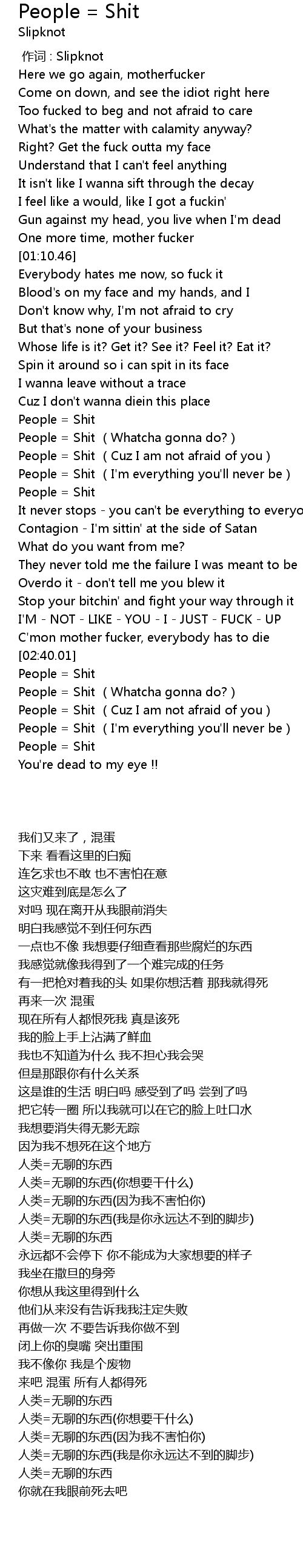 | [01:43.28] | People = Shit (Whatcha gonna do?) |