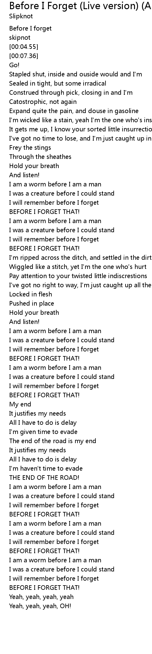 | [04:04.33] | BEFORE I FORGET THAT! |
