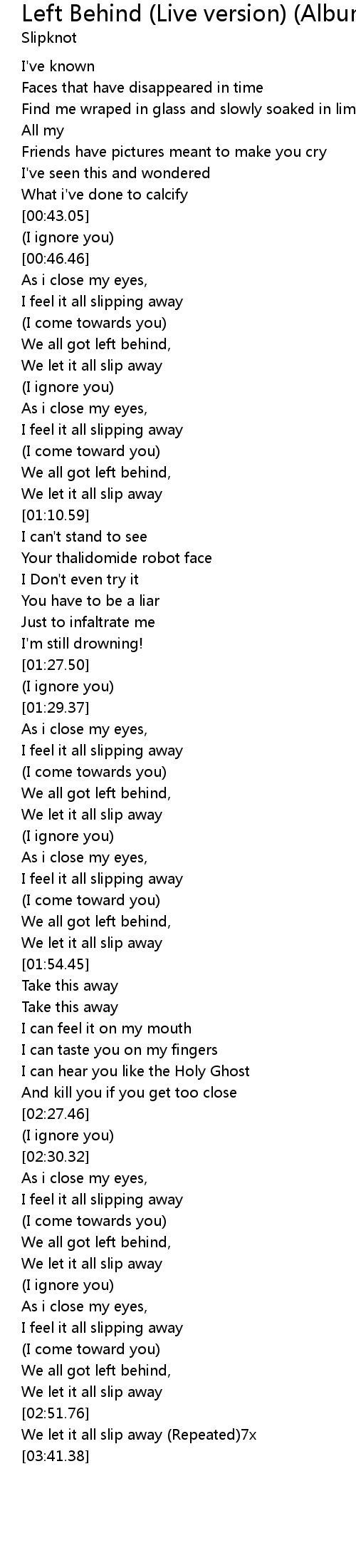 | [01:47.50] | We all got left behind, |