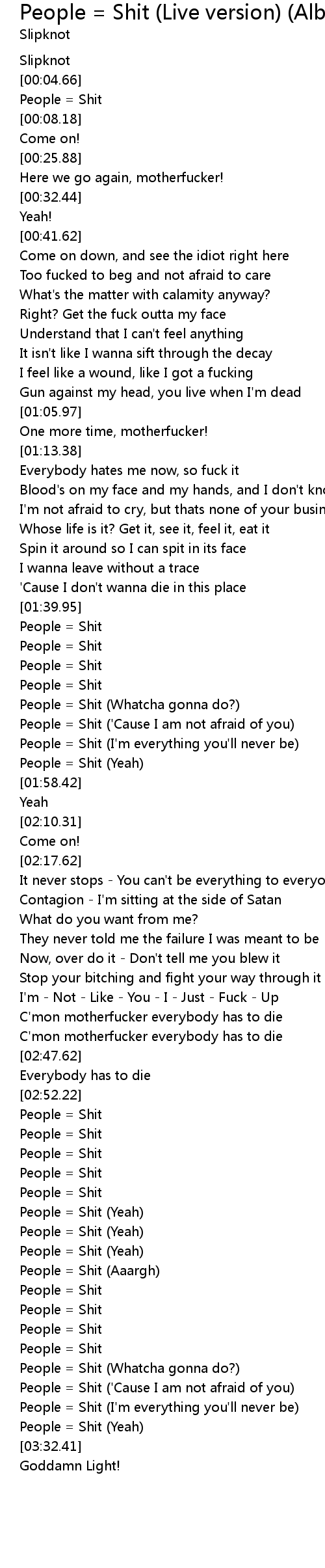 | [01:50.04] | People = Shit (Whatcha gonna do?) |