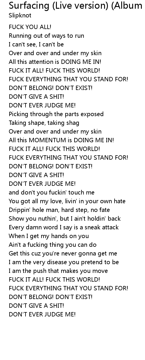 | [02:58.47] | FUCK EVERYTHING THAT YOU STAND FOR! |