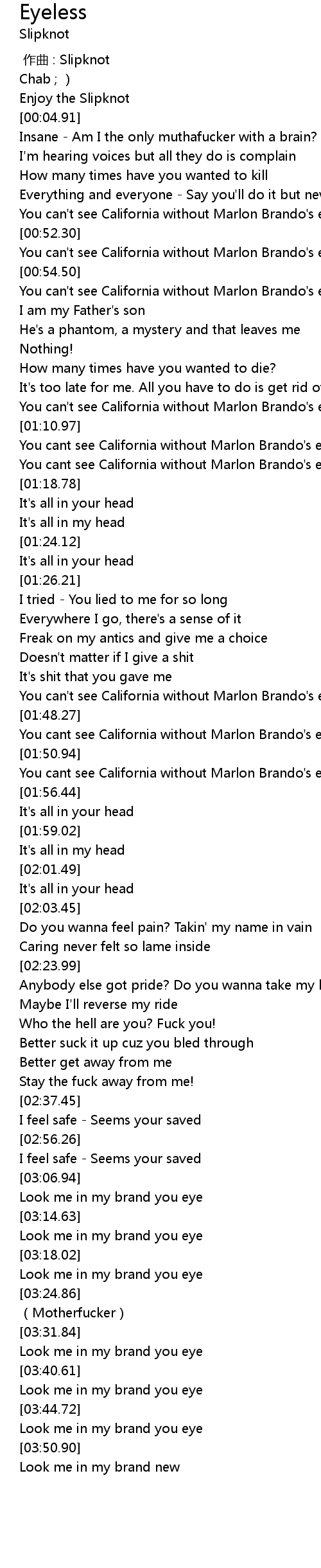 | [00:00.00] | 作曲 : Slipknot |