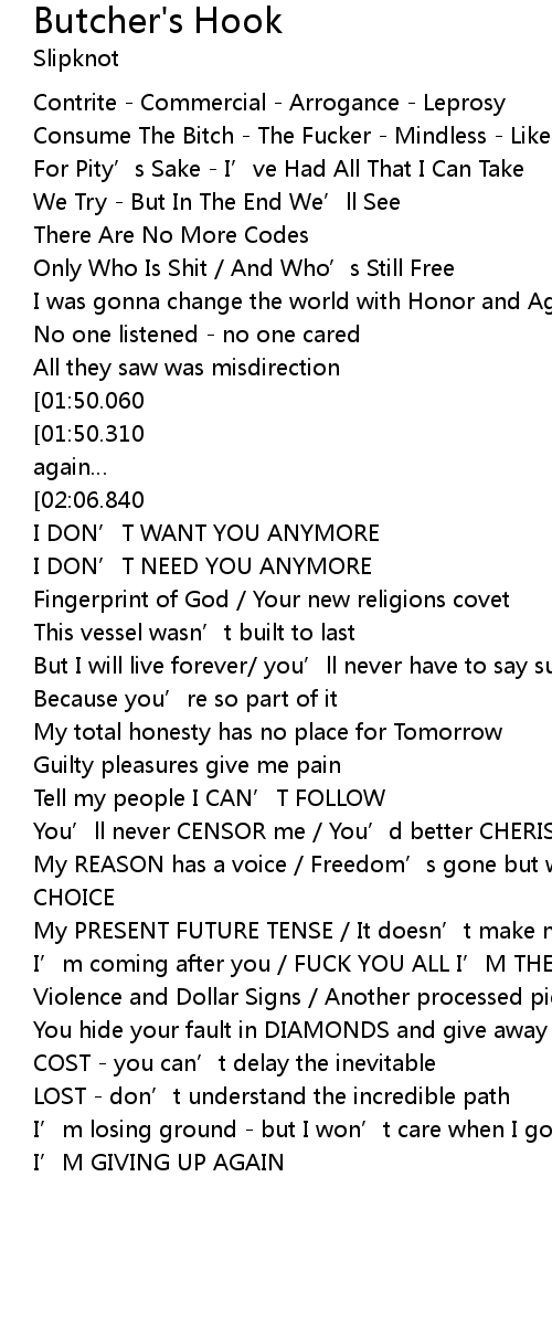 | [00:20.059] | Consume The Bitch - The Fucker - Mindless - Like A Child |
