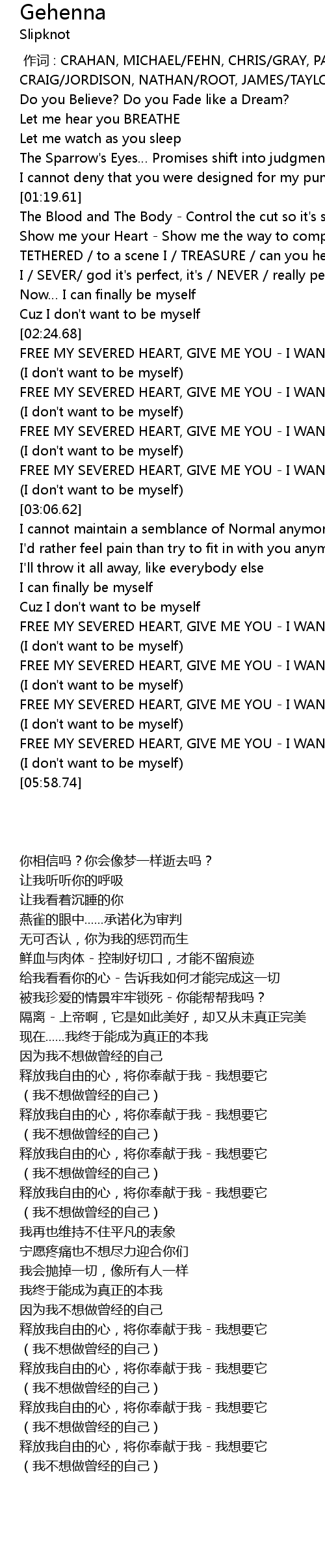 | [02:54.50] | FREE MY SEVERED HEART, GIVE ME YOU - I WANT IT |
