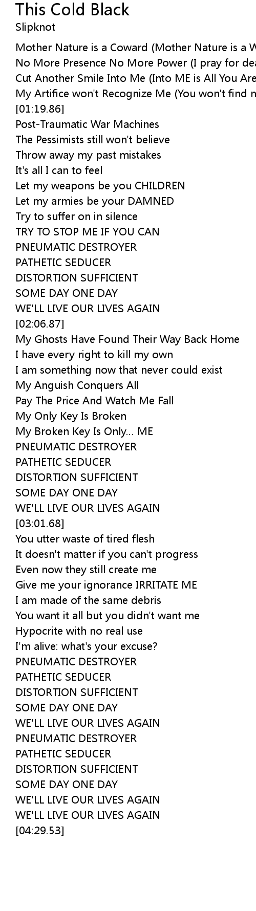 | [01:02.66] | No More Presence No More Power (I pray for death, by the hour) |