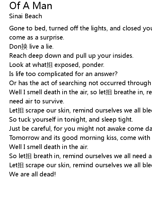 | Let抯 scrape our skin, remind ourselves we all bleed, we all die. | |