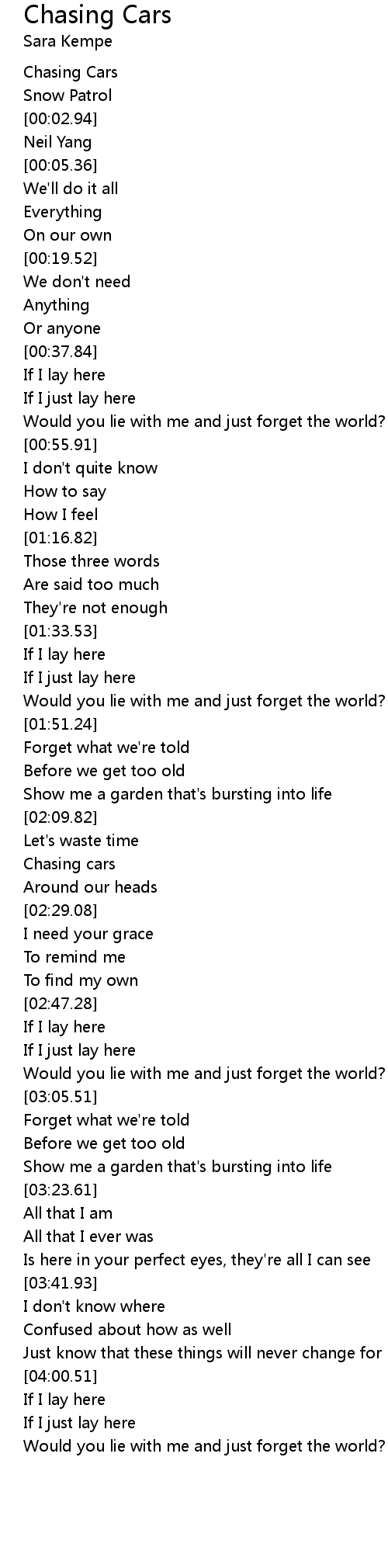 [00:01.13] Chasing Cars