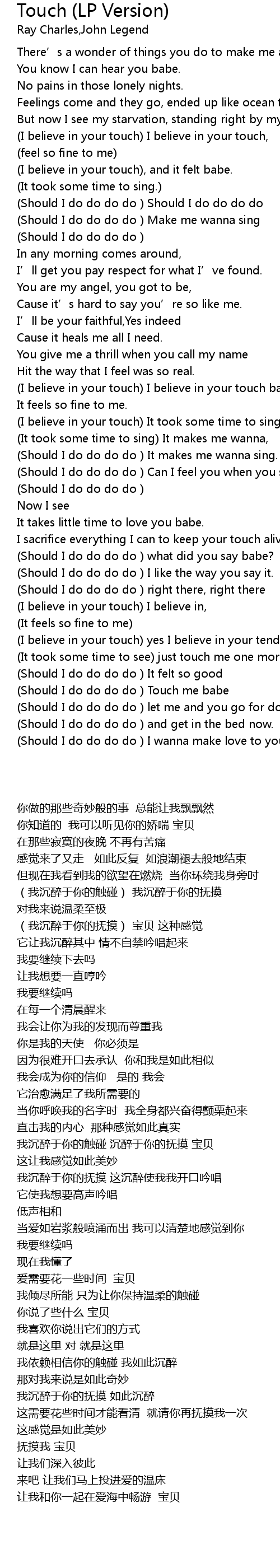| [02:14.19] | I believe in your touch I believe in your touch babe. |