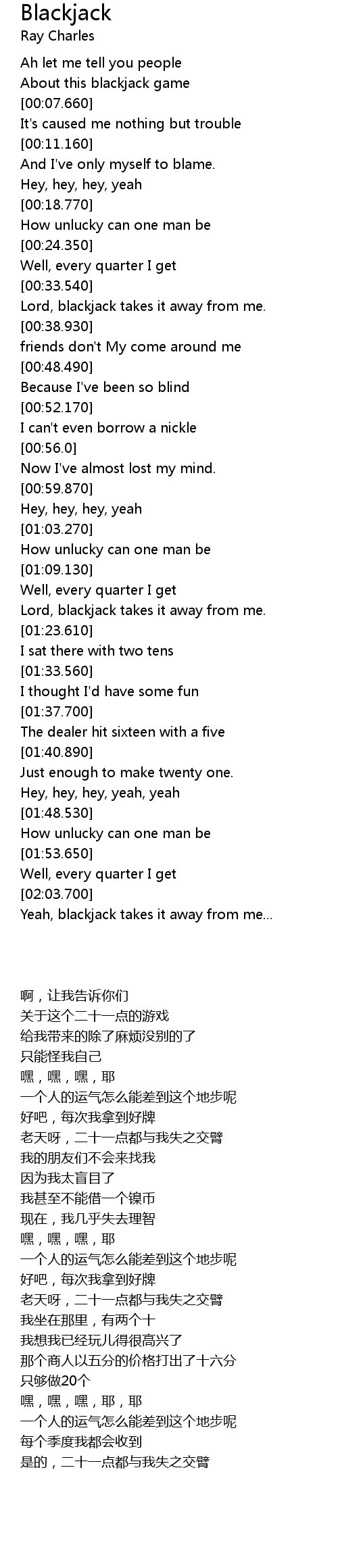 | [01:18.800] | Lord, blackjack takes it away from me. |