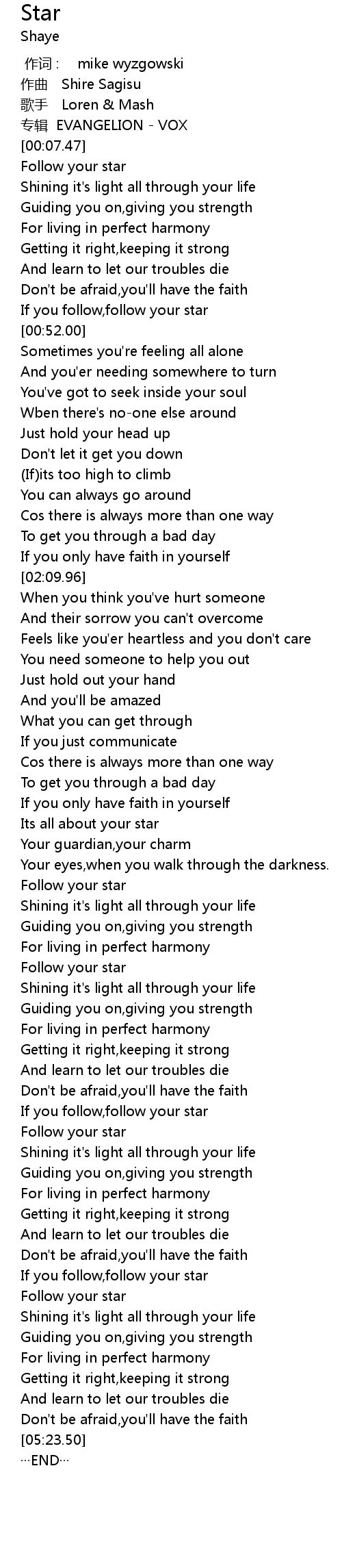 | [03:52.52] | Follow your star |
