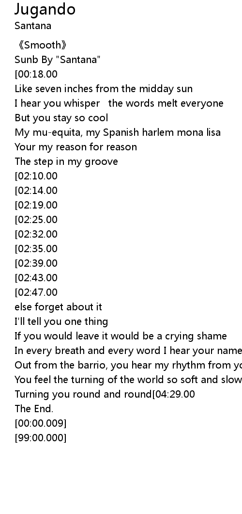 | [00:34.00] | My muequita, my Spanish harlem mona lisa |