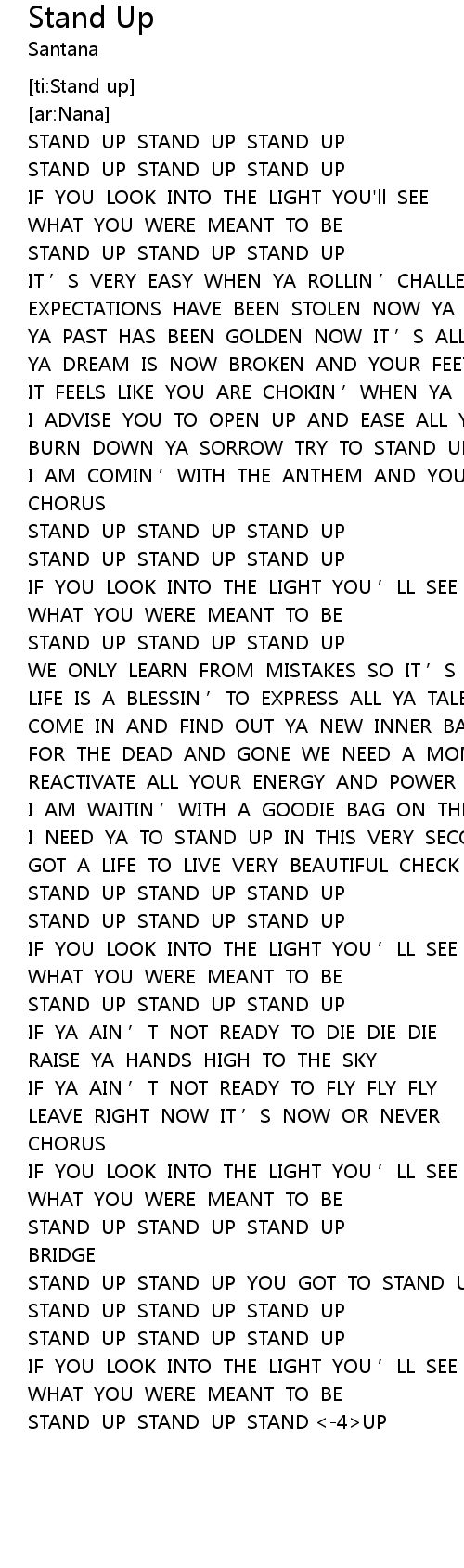 | [03:00.78] | STAND UP STAND UP YOU GOT TO STAND UP |