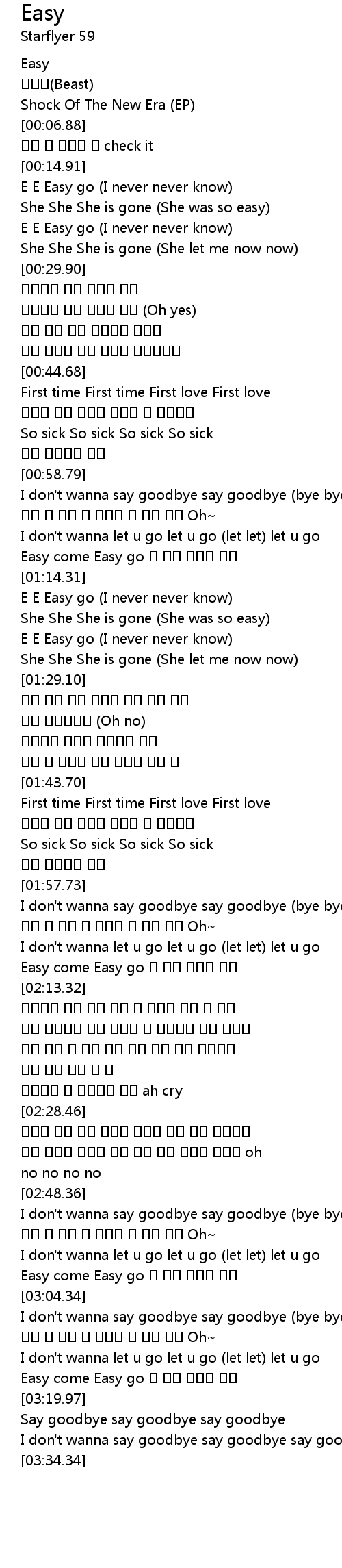| [00:15.35] | E E Easy go (I never never know) |