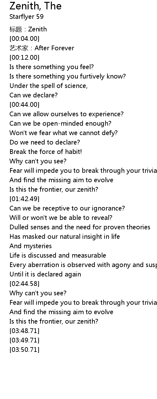 | [01:16.89] | Fear will impede you to break through your trivial life |