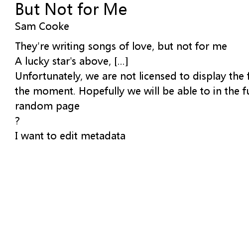 | Unfortunately, we are not licensed to display the full lyrics for this song at the moment. Hopefully we will be able to in the future. Until then, how about a | |