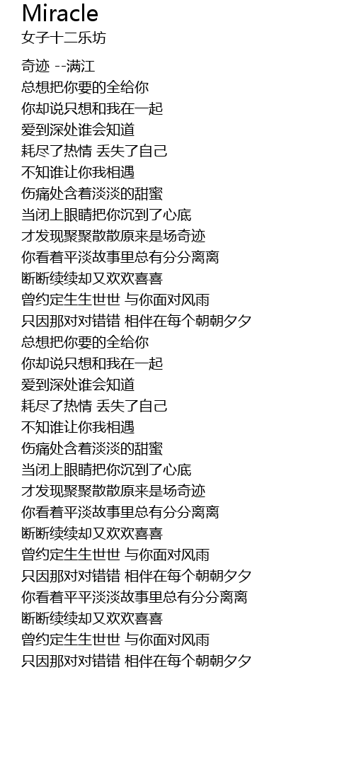 | 歌曲 | Miracle |