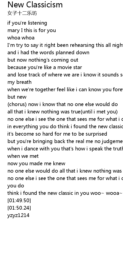 New Classicism 歌词