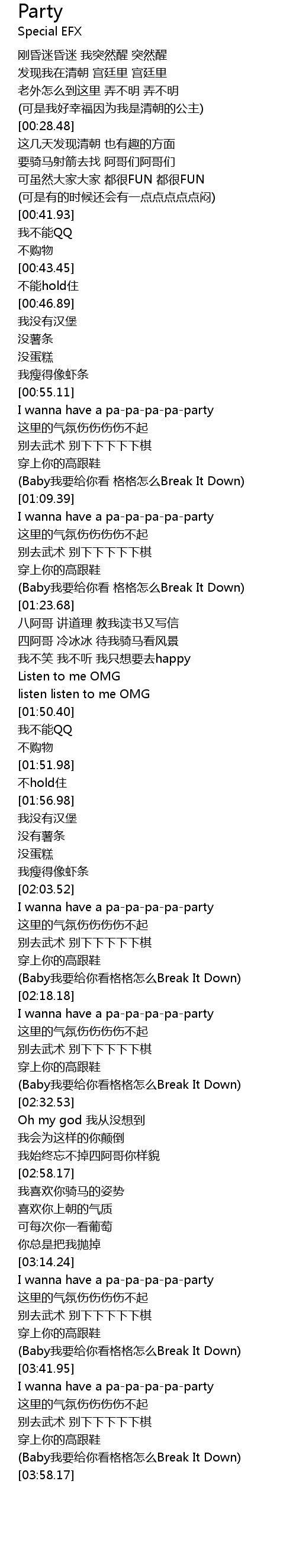 | [02:03.73] | I wanna have a pa-pa-pa-pa-party |