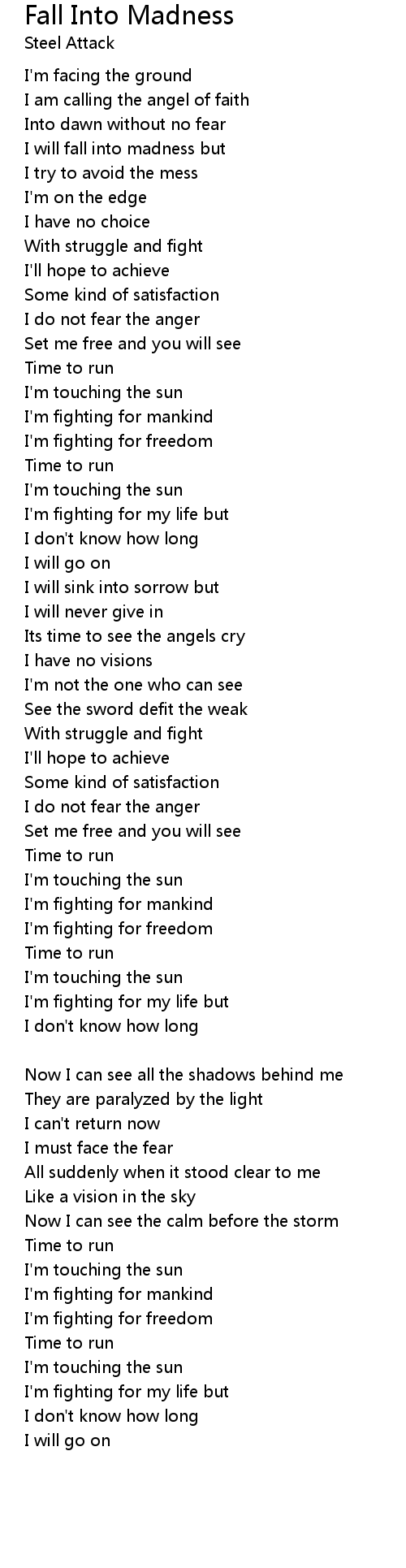 Fall Into Madness 歌词