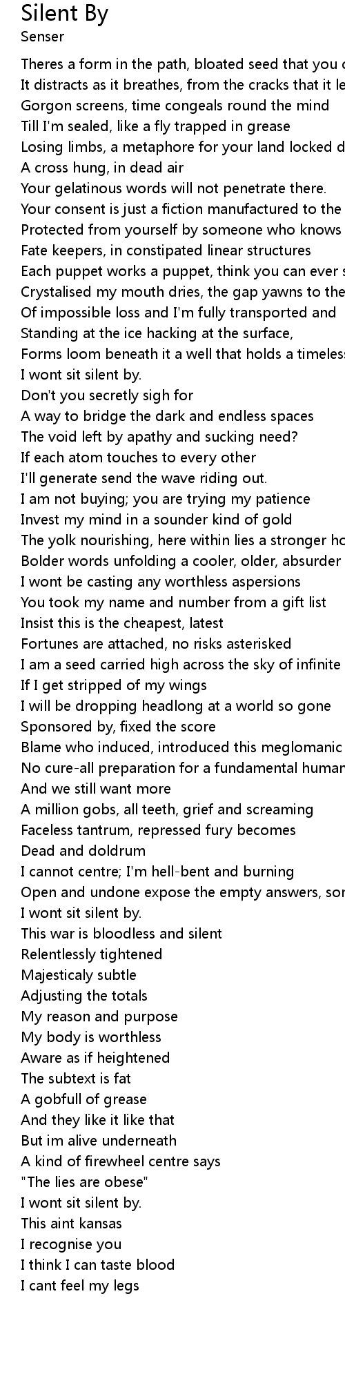 | I wont sit silent by. | |