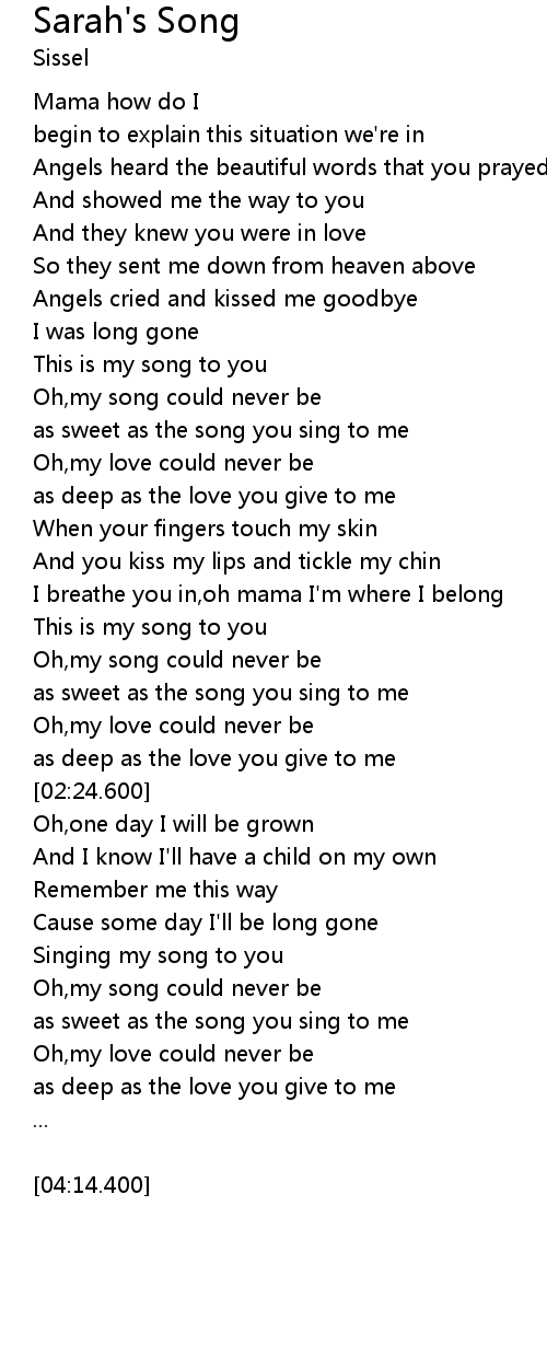 | [01:42.199] | I breathe you in, oh mama I' m where I belong |