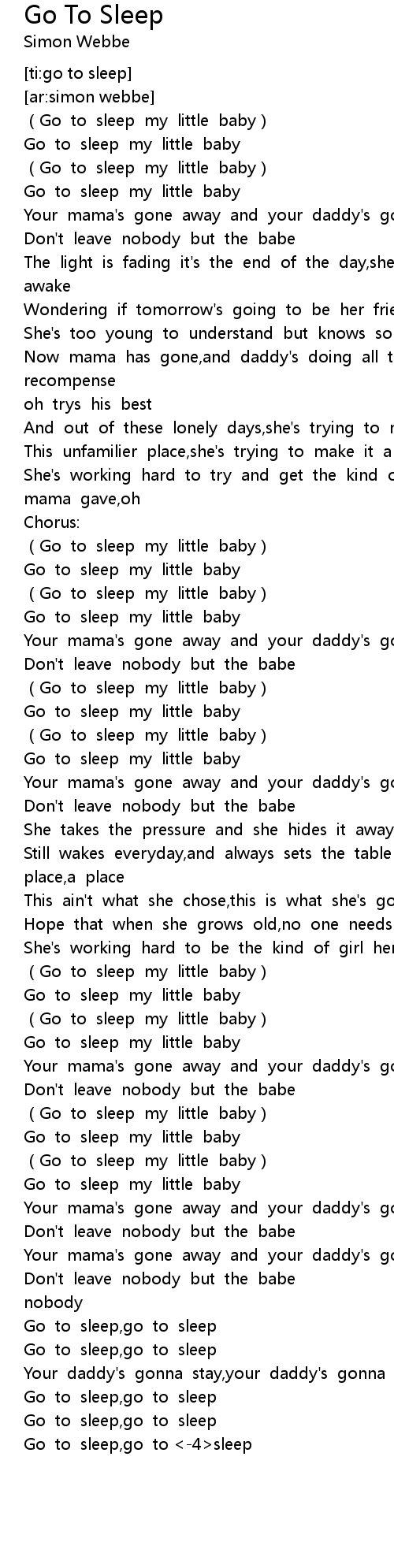 | [03:00.22] | Go to sleep, go to sleep |
