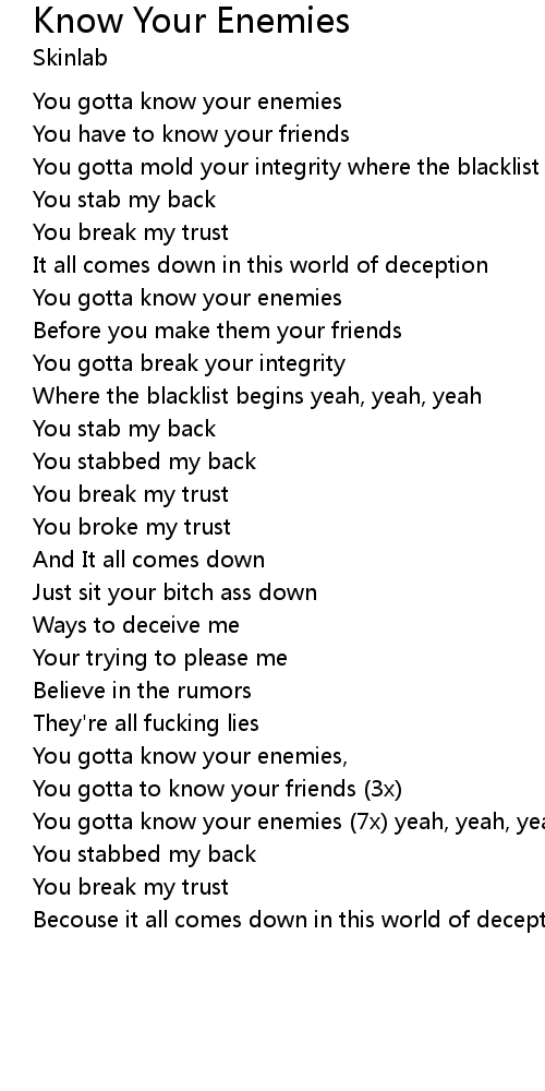 You gotta know your enemies (7x) yeah, yeah, yeah |