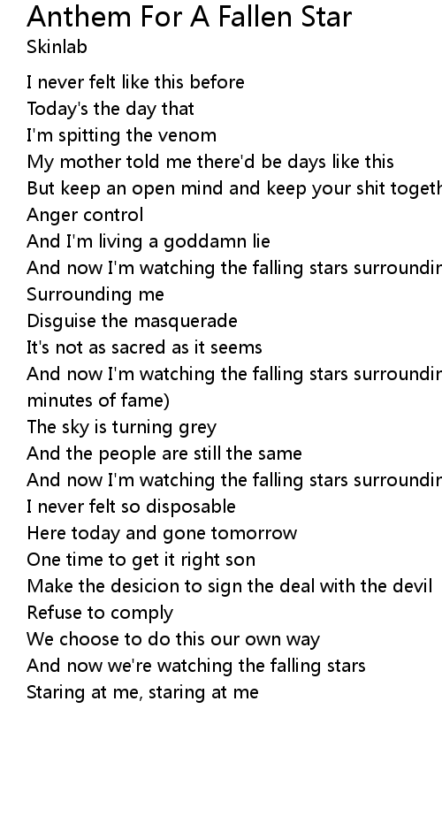 And now I'm watching the falling stars surrounding me, surrounding me (Fifteen minutes of fame) |