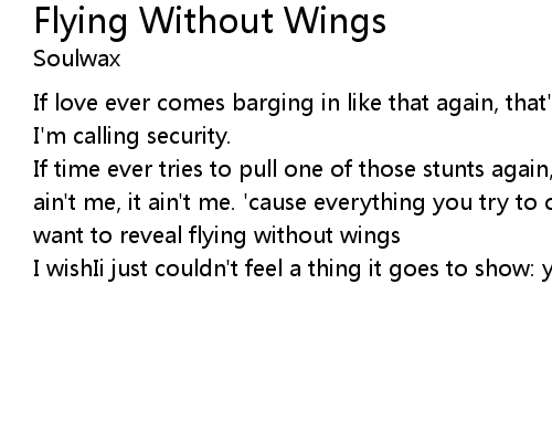| If time ever tries to pull one of those stunts again, you'd better believe, it ain't me, it ain't me. 'cause everything you try to conceal is everything you want to reveal flying without wings | |