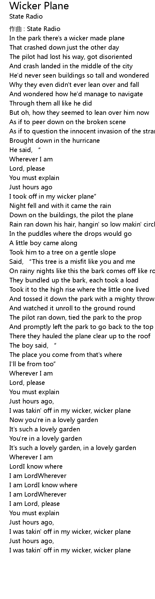 | 歌曲 | Wicker Plane |