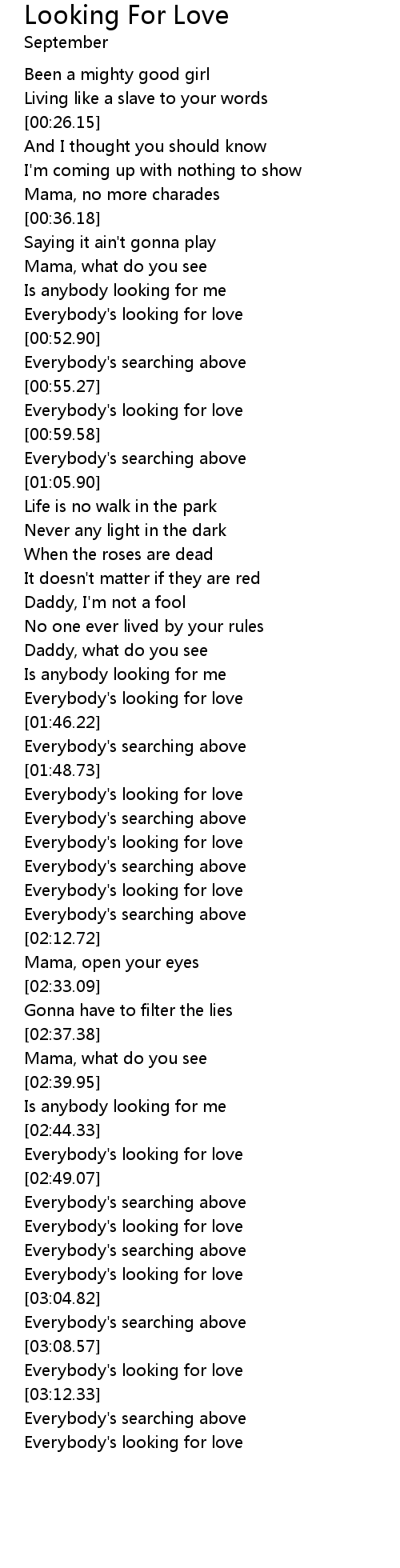 | [02:07.72] | Everybody's looking for love |