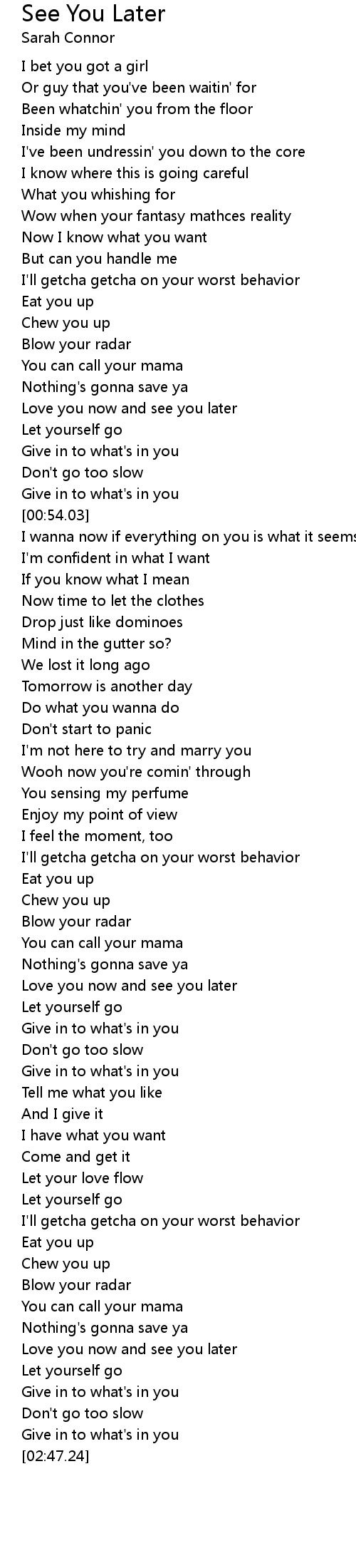 Love you now and see you later |