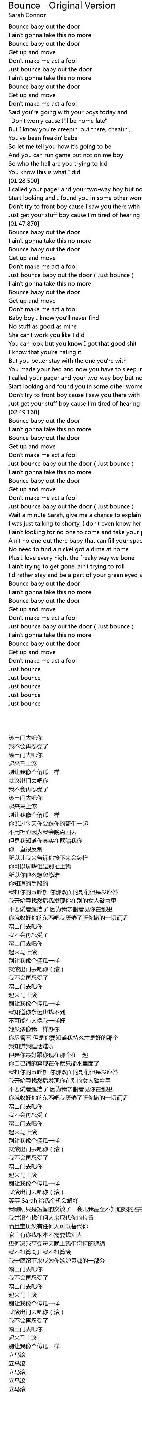 | [02:59.600] | Just bounce baby out the door(Just bounce) |